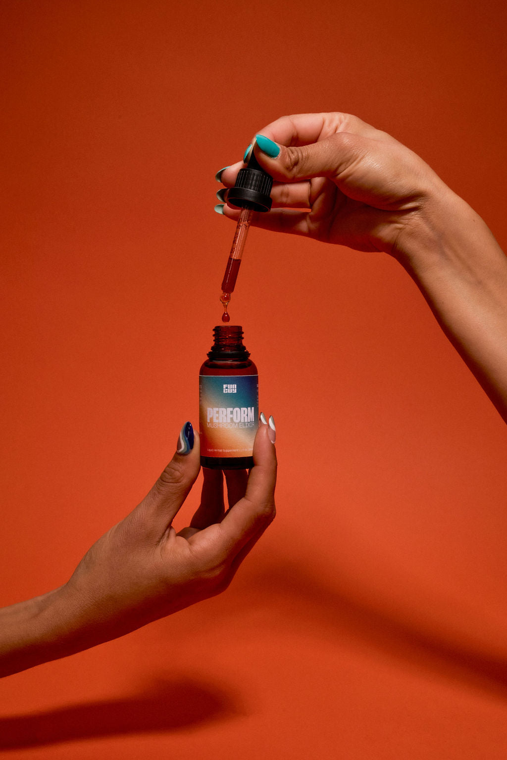 The Perform tincture supports sustained energy, cognition, and libido with a blend of functional mushrooms and adaptogenic plants.