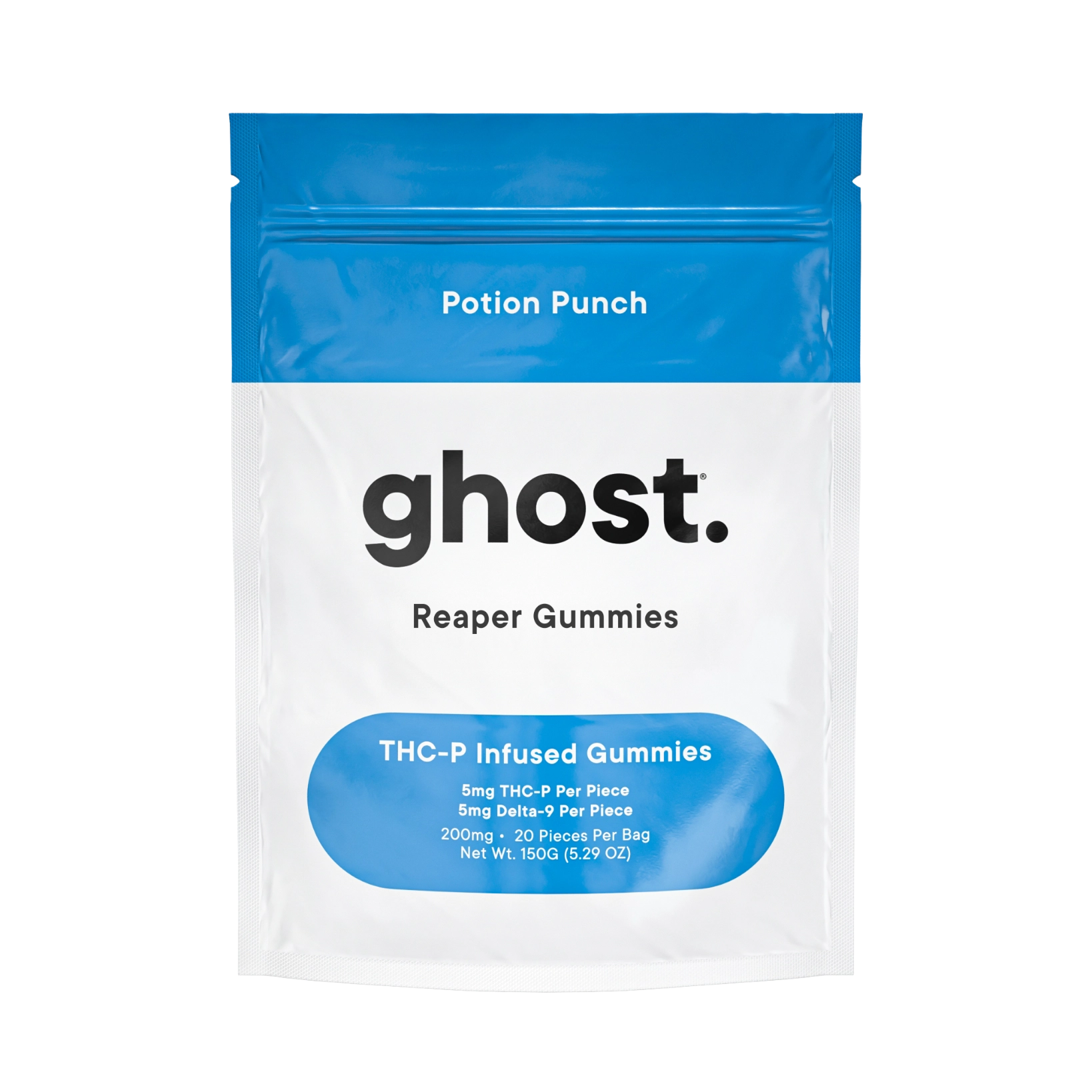 Enjoy the enchanting Potion Punch Reaper Gummies. 200mg per bag, 10mg each of THC-P and Delta-9 for a balanced experience.